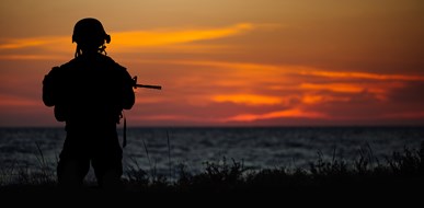 Photo: PRESSLAB - Silhouette of soldier with rifle on a sunset dark background