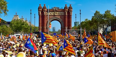 A large crowd waves Catalan independence flags during a pro-independence rally. - @iStock