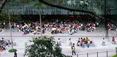 On Sundays, foreign domestic workers in Honk Kong have their only mandatory day off. Because of their lack of private space, they scatter over the city’s parks, walkways and roofed corners. © Flickr by Rex Pe.