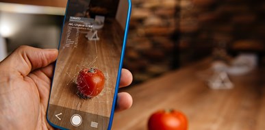 Man using artificial intelligence on smart phone with augmented reality application for recognising food (©Shutterstock)