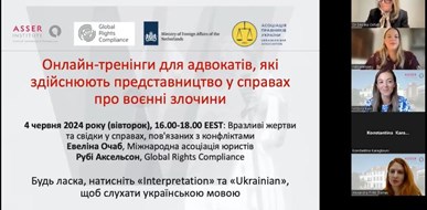 Between May and June 2024, the T.M.C. Asser Institute, in collaboration with the Ukrainian Bar Association, co-organised four online training sessions for Defence and Victim’s counsel, as part of the MATRA-Ukraine project in partnership with Global Rights Compliance. The sessions followed an in-person kick off session for defence counsel which was held in Kyiv in March 2024, in which the ethics of defence, rights and defence strategy and application of international law in conflict-related cases were discussed with international experts.